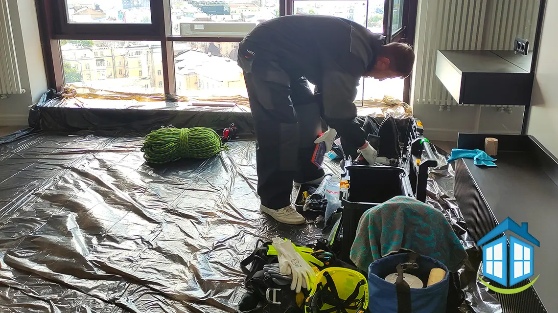 При заміні майстру необхідно працювати із зовнішнього боку фасаду вікон. Він розбирає фасадні з'єднувачі, які притискають склопакети. Знімати фасад часто доводиться також і на сусідніх вікнах, оскільки вони взаємопов'язані.