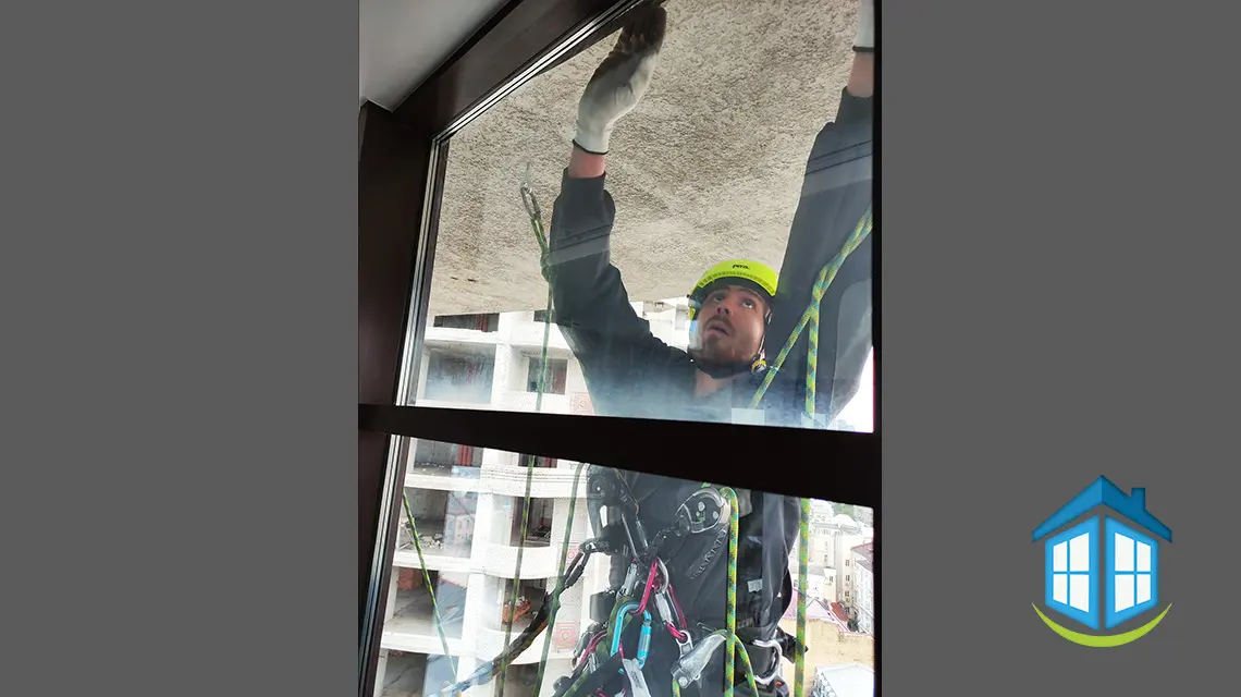 В алюмінієвому фасаді заміна склопакету здійснюється з боку вулиці. Тому потрібно створити належні умови для безпечної роботи